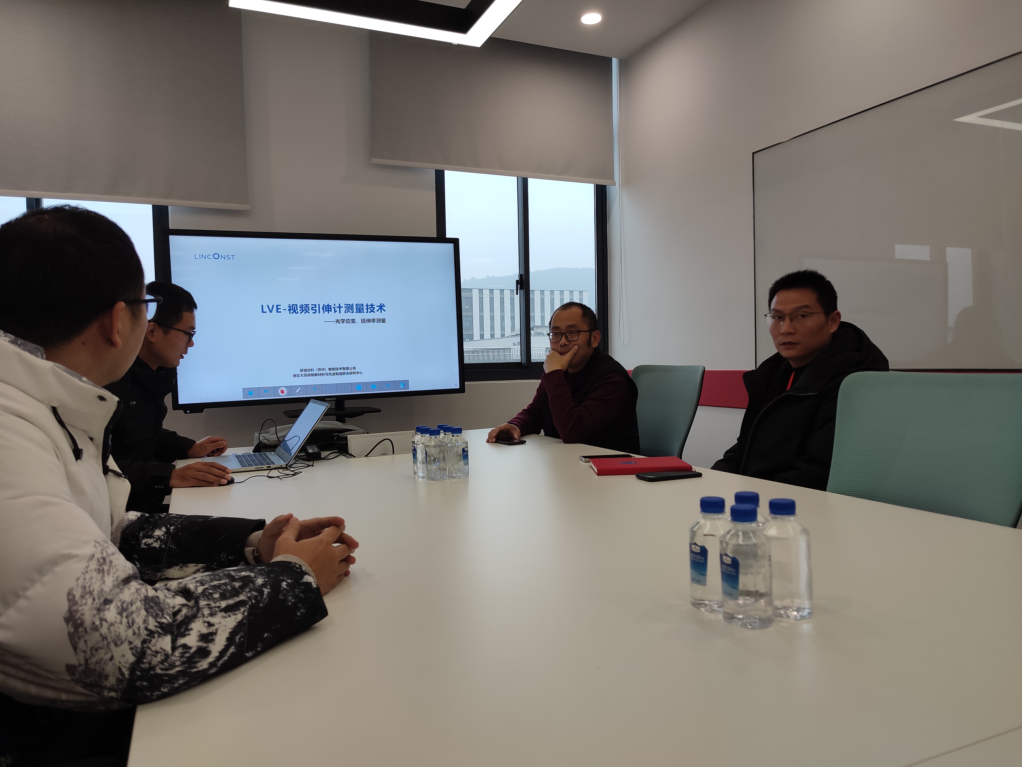 現(xiàn)場展示視頻引伸計的操作流程,我們銷售及技術(shù)團(tuán)隊在認(rèn)真觀摩學(xué)習(xí)。