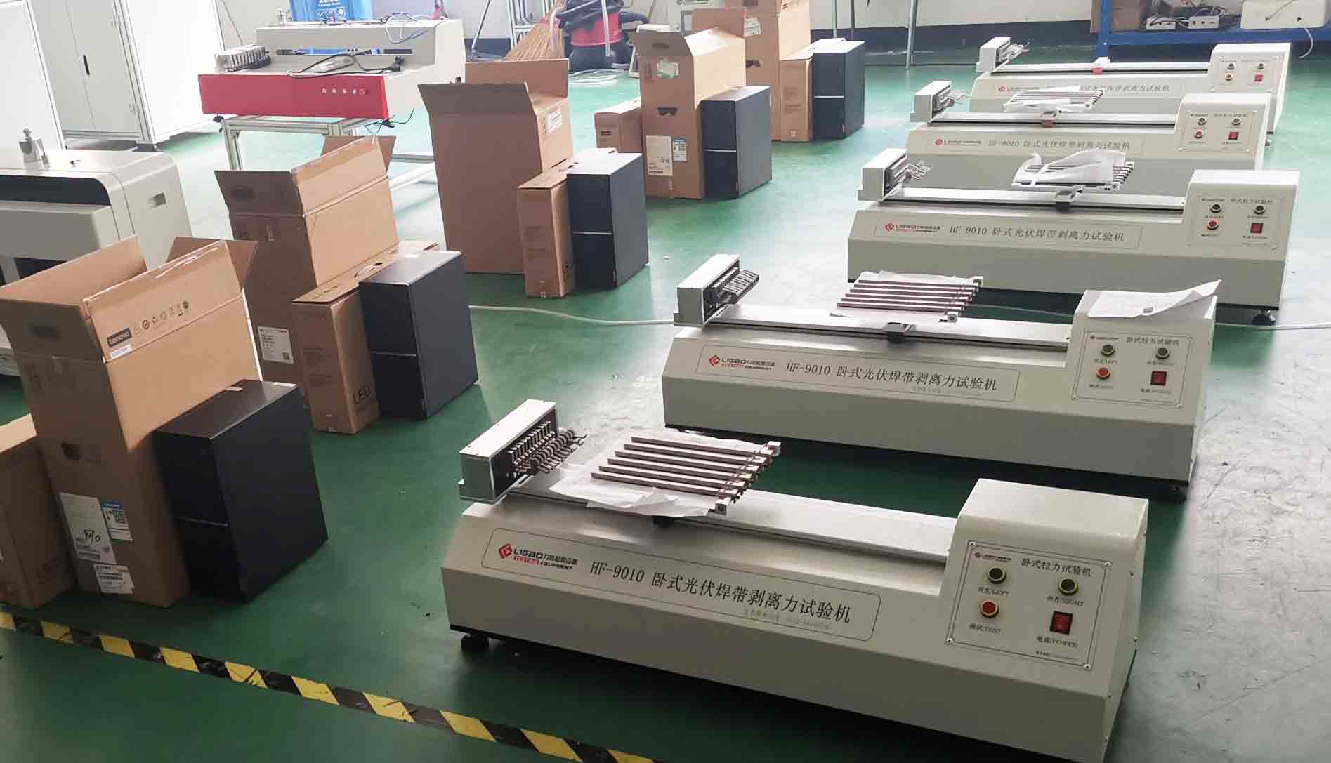 江蘇力高檢測設(shè)備有限公司生產(chǎn)的光伏焊帶拉力試驗(yàn)機(jī)在光伏行業(yè)占首要地方,與通威,隆基樂葉,中來等企業(yè)期合作,產(chǎn)品得到客戶的高度認(rèn)可,下圖為江蘇某光伏廠家一次性訂購五臺十二工位光伏焊帶拉力試驗(yàn)機(jī)。